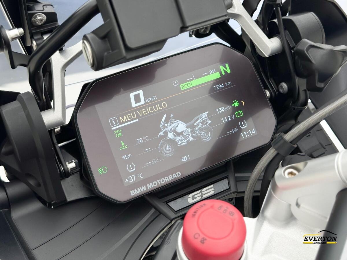 MOTOR BOXER BICILÍNDRICO A QUATRO TEMPOS, REFRIGERAÇÃO AR/LÍQUIDO E TECNOLOGIA BMW SHIFTCAM. SUSPENSÕES TELELEVER E PARALEVER COM ABS PRO INTEGRAL OTIMIZADO PARA CURVAS. EQUIPADA COM SISTEMA KEYLESS, PREPARAÇÃO PARA GPS, MONITORAMENTO DE PRESSÃO DE PNEUS, CONTROLE DE CRUZEIRO, PROTETORES, DESA, ASSISTENTE DE TROCA DE MARCHAS, CONTROLE DINÂMICO, FAROL ADAPTATIVO, MODOS DE PILOTAGEM PRO E RODAS RAIADAS DOURADAS.