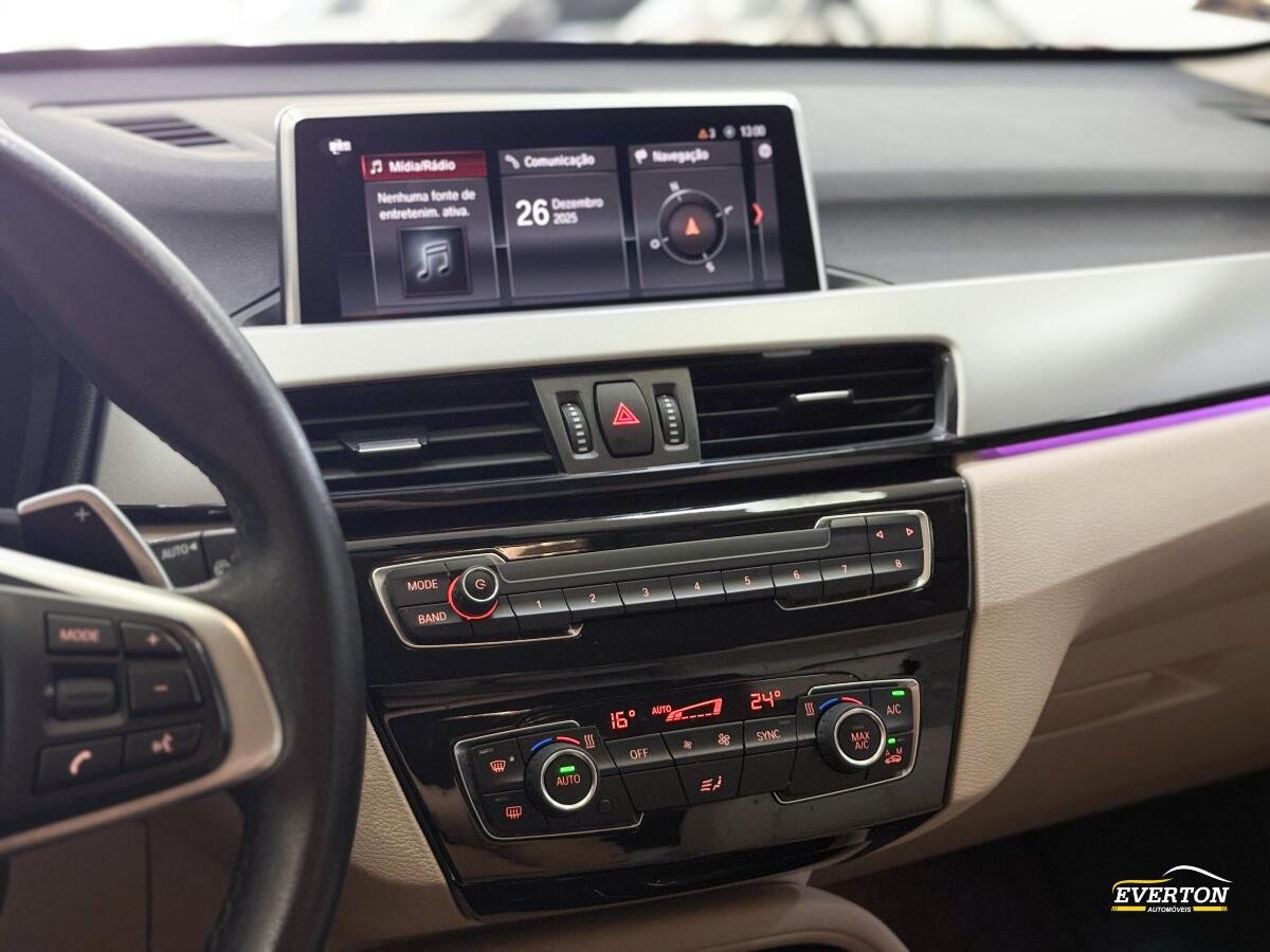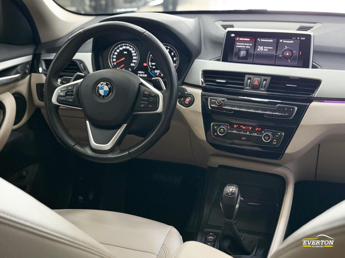 225 km/hA BMW X1 20I ACTIVE FLEX 21/22 É UM SUV COMPACTO PREMIUM EQUIPADO COM MOTOR 2.0 TURBO FLEX DE 192 CV E 28,5 KGFM DE TORQUE, TRANSMISSÃO AUTOMÁTICA DE 8 MARCHAS E TRAÇÃO DIANTEIRA. POSSUI ACABAMENTOS EM COURO, AR CONDICIONADO DIGITAL DUAL ZONE, SISTEMA DE NAVEGAÇÃO COM TELA DE 8,8 POLEGADAS, SEIS AIRBAGS, CONTROLE DE ESTABILIDADE E TRAÇÃO, SENSORES DE ESTACIONAMENTO DIANTEIROS E TRASEIROS, CÂMERA DE RÉ, FARÓIS FULL LED ADAPTATIVOS E SISTEMA DE SOM HIFI. O PORTAMALAS TEM CAPACIDADE DE 505 LITROS.