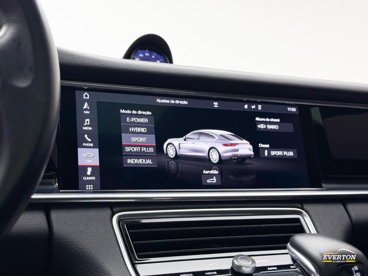 PORSCHE PANAMERA 4E HYBRID, MOTOR 2.9 TURBO DE 330CV E 45,9 KGFM, TRAÇÃO INTEGRAL E CÂMBIO DE 8 MARCHAS, ACELERA DE 0 A 100 KM/H EM 4,6s. INTERIOR EXCLUSIVO COM BANCOS ESPORTIVOS EM COURO, POSSUI AUTONOMIA URBANA MÉDIA DE ATÉ 19KM, E RODOVIARIA DE ATÉ 21 KM, POSSUI UM PORTA MALAS DE 405 LITROS. RODAS DE LIGA LEVE, FREIOS ESPORTIVOS, SISTEMA DE ESTABILIDADE, COMPUTADOR DE BORDO, ESPELHOS ELETRICOS, MONITORAMENTE PRESSÃO DOS PNEUS E TETO SOLAR PANORAMICO ELETRICO.